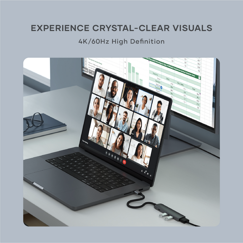 Ο Satechi 4-in-1 USB-C Slim Multiport Adapter 4K είναι ένας κομψός και ισχυρός USB-C αντάπτορας που συνδυάζει τέσσερις βασικές θύρες σε μία λεπτή και φορητή συσκευή. Ιδανικός για επαγγελματίες, φοιτητές και δημιουργούς περιεχομένου που χρειάζονται αξιόπιστη συνδεσιμότητα εν κινήσει.