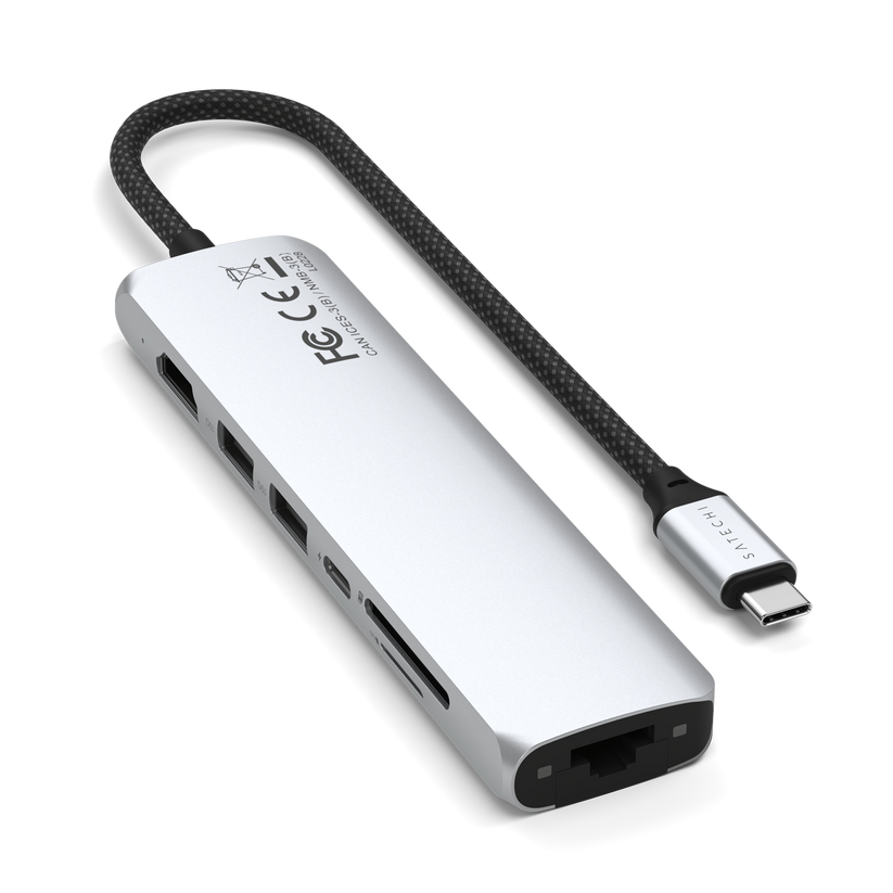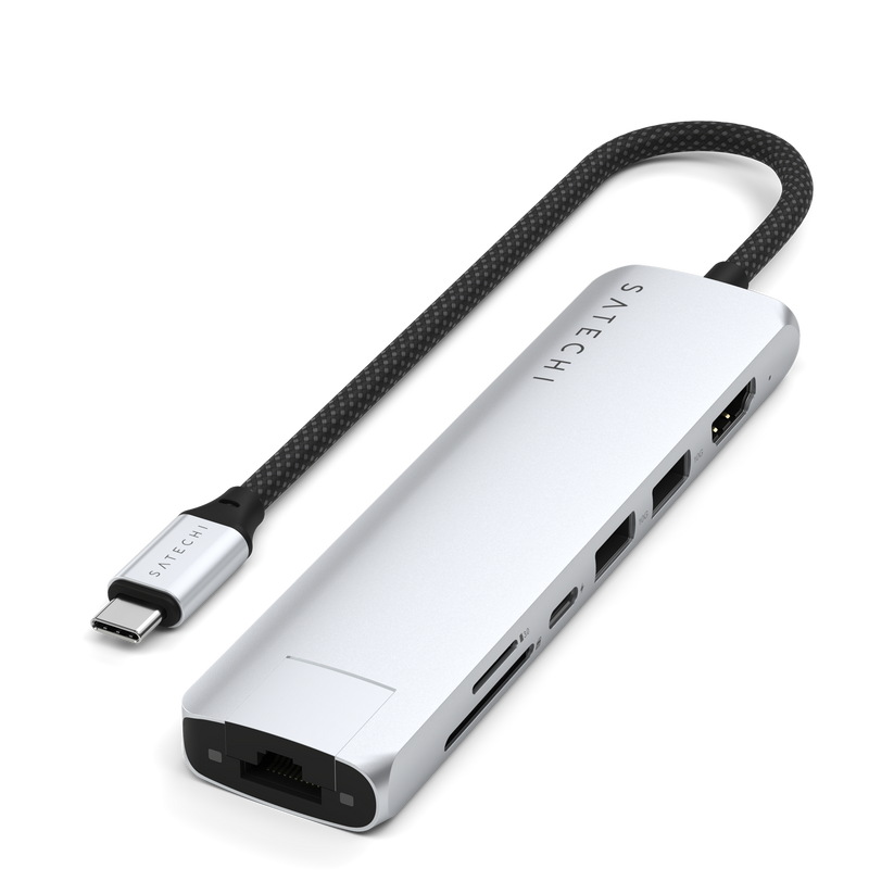 Satechi 7-in-1 USB-C Slim Multiport Adapter with Ethernet - Silver